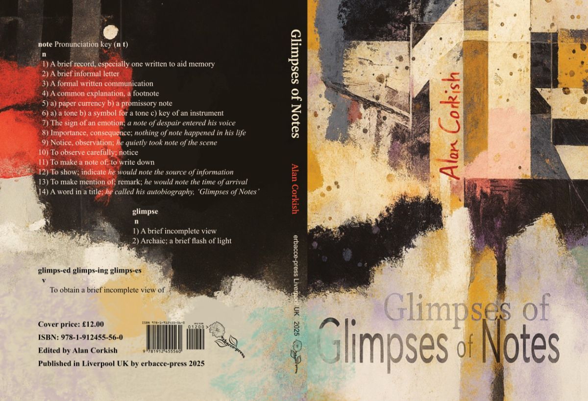 I found the book impossible to put down... I have never read anything else quite like it. Few poets would be brave enough to attempt what Alan Corkish has done in ‘Glimpses of Notes’, an autobiography in a very different format to what readers will be used to. Touching, warm, intelligent, inventive, humorous and yet critical and opinionated. It hooked me. I found the book impossible to put down until I reached the end… and then I started to read it all over again.